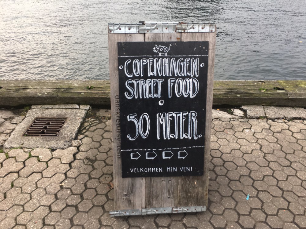 Så gik vi over den sjove bro ved papirs øen og endte over ved Copenhagen street food. Her var vi inde og få frokost. Pomfritter (shit, de var lækre) og en lækker Wrap med friturestegt kylling. Mums!