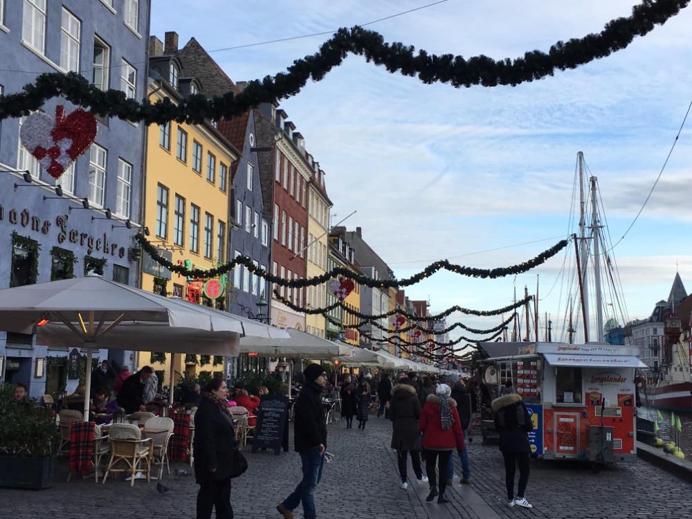 Vi skulle selvfølgelig forbi Nyhavn. Der er altid så hyggeligt, men specielt også nu, hvor de havde pyntet til jul og havde små huse langs vandet hvor der blev solgt æbleskiver og gløgg. I kan også se billedet på min instagram